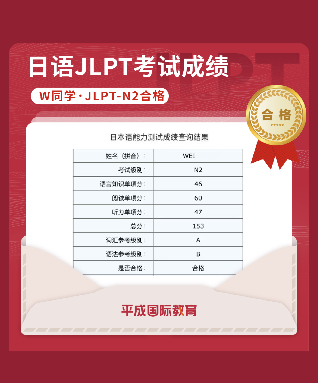 W同學(xué)在2025年8月的JLPT考試中獲取153分
